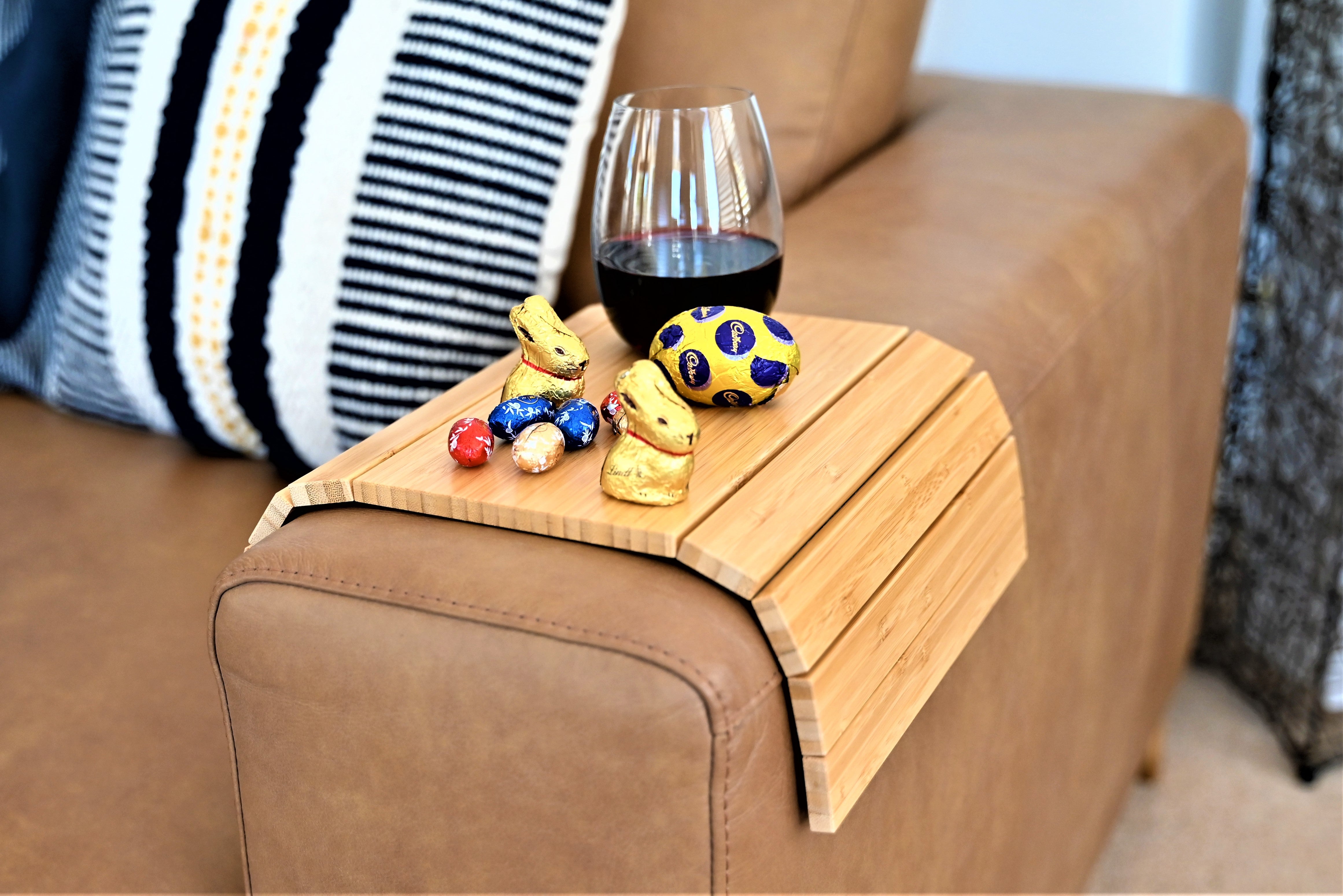 Bring effortless convenience to your living space with the Large Slinky Sofa Table. NEW! Ideal for a chaise or ottoman, Available in natural bamboo, this larger design rests securely on your sofa cushions, wide arms, or ottomans — perfect for couches with arms unsuitable for a regular Slinky.
